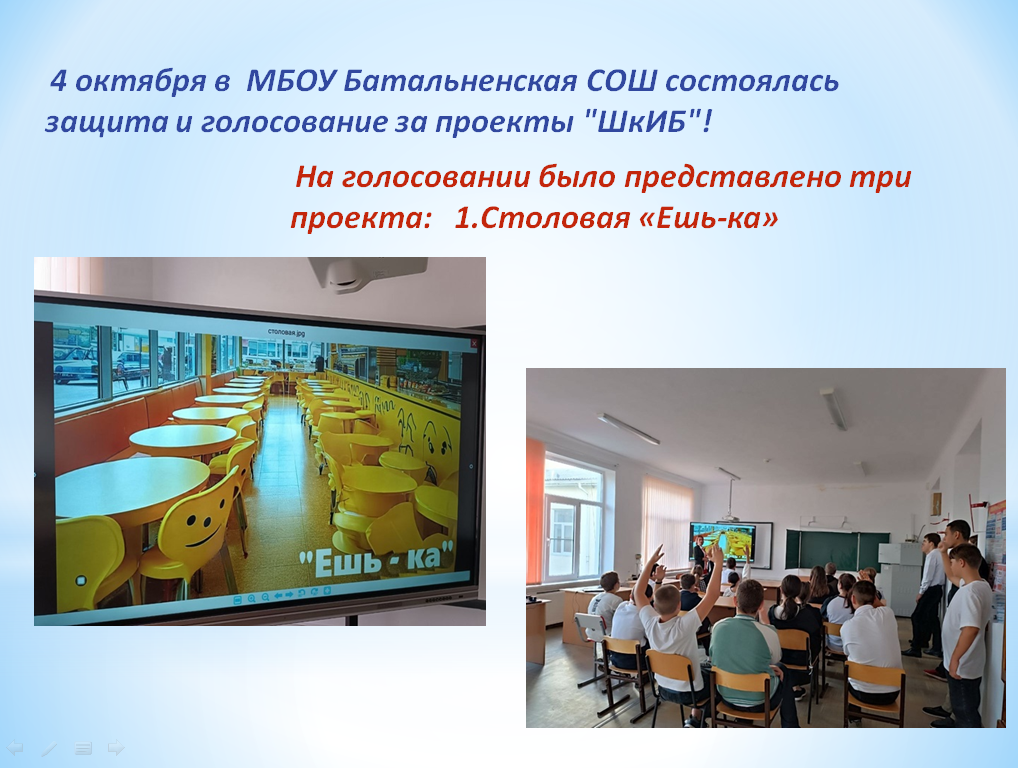 Сегодня в МБОУ Батальненская СОШ состоялась защита и голосование за проекты "ШкИБ"! Ициативные группы школьников презентовали свои проекты перед обучающимися и педагогами! На голосовании было представлено три проекта: